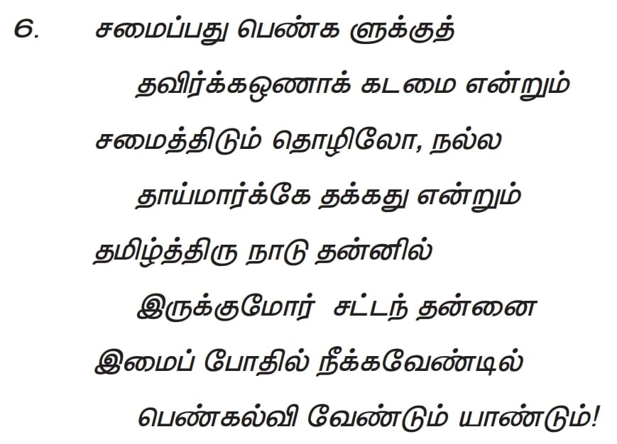 18. “இனிமைத் தமிழ்மொழி எமது எமக்கு இன்பந் தகும்படி வாய்த்தநல் அமுது”